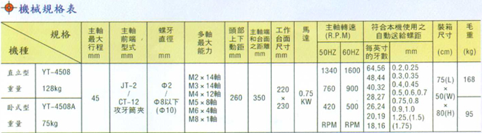 • 產品名稱: YT-4508齒輪式牙距自動攻牙機